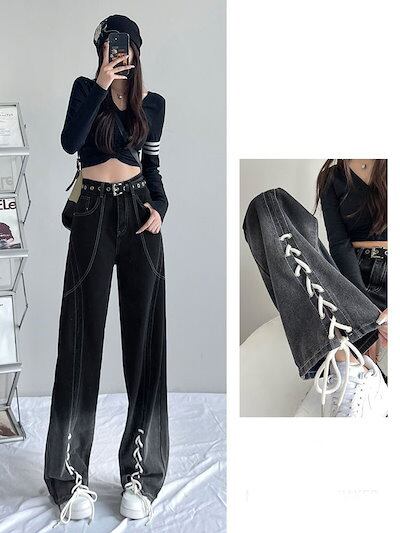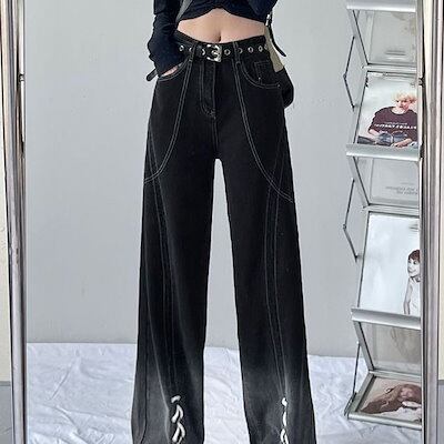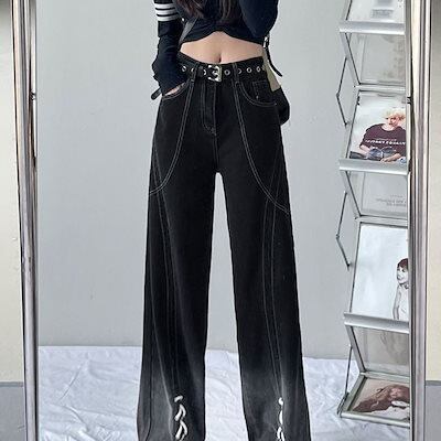 グラデーション ストレート ジーンズ 春秋 ギャル ハイウエスト ゆったり ワイドパンツ レディース デニム モップパンツ