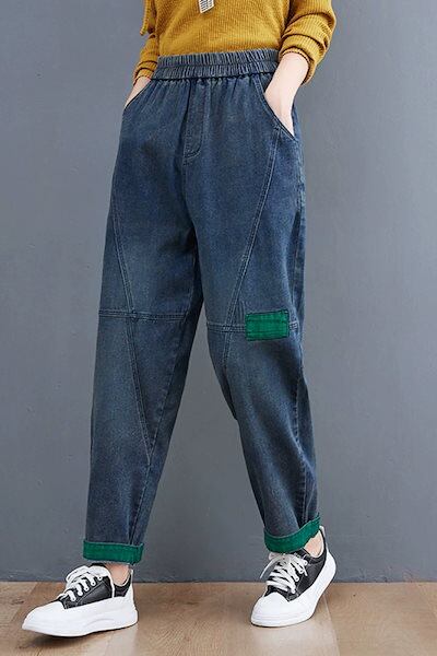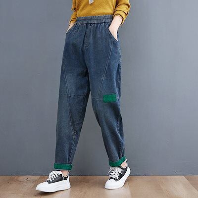 伸縮性のあるウエストデニムハーレムズボン新しいゆるいサイズハーレムパンツスラックスパンツジーパンレディース