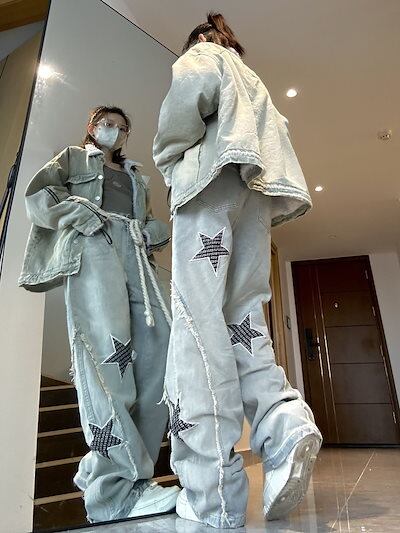 大きいサイズ アメリカ レトロ ジーパン デザインセンス ストレートジーンズ レディー ins ロングパンツ