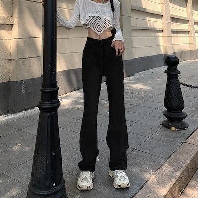 秋冬 大きいサイズ デニムパンツ 韓国 レディースファッション ハイウエスト ゆったり 着痩せ ストレート ワイドパンツ
