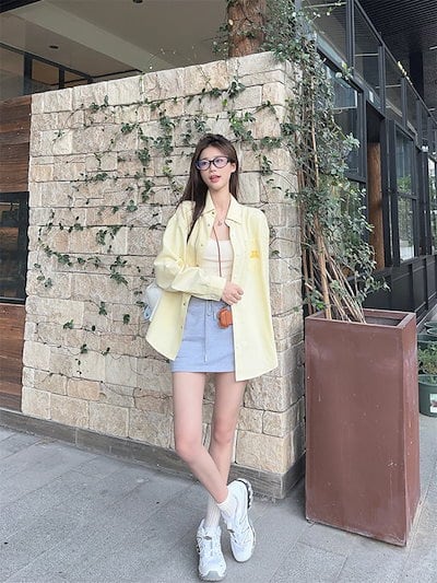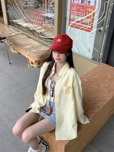2024秋冬トップス シャツ 長袖 ストライプ ボタン 襟 ゆったり 秋 黄色 イエロー おしゃれ かわいい 韓国ファッション レディース お出かけ