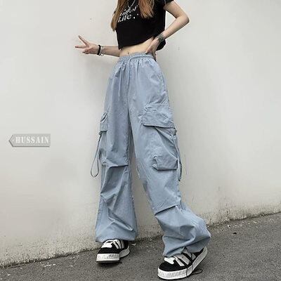 2024 秋 ウエストゴム ハイウエスト カーゴパンツ ジョガーパンツ ズボン レディース ボトムスファッション系リラックス ゆったり オーバーサイズ カジュアル スポーティー メンズライク