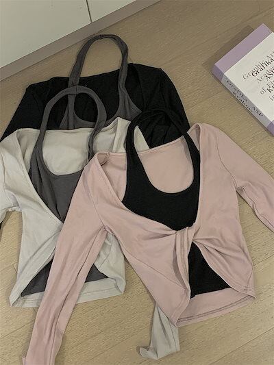 2024秋 長袖 Tシャツ ショート丈 カットソー トップス カジュアル 配色 韓国系ストリート ロゴ へそ出し タイトネックスリーブ 肌見せ T ファッションレディース かわいい衣装風冬トップス