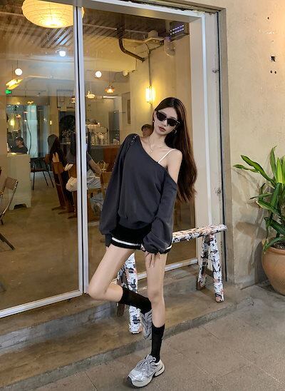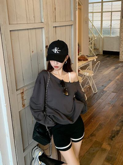 2024 秋冬 トップス 長袖 かわいいラウンドネック Tシャツ 肌見せ レディース 韓国風 ルーズ ゆったり 無地 カジュアル おしゃれサイズ シルエットファッション系コーデ衣装お出かけ3