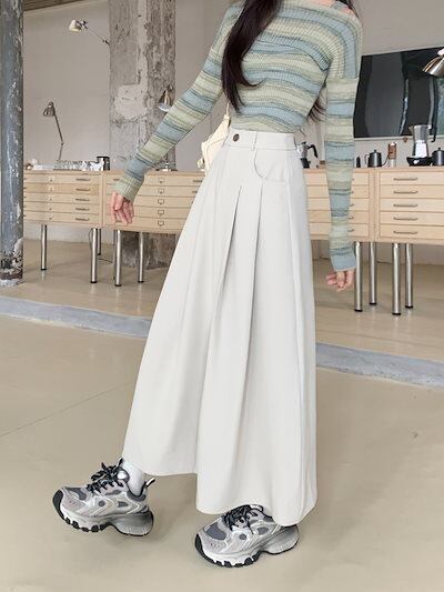 2024秋冬スカート ロング丈 Aライン ハイウエスト 美脚効果 脚長効果 細見え 秋 白 黒 おしゃれ かわいい 韓国ファッション レディース お出かけ