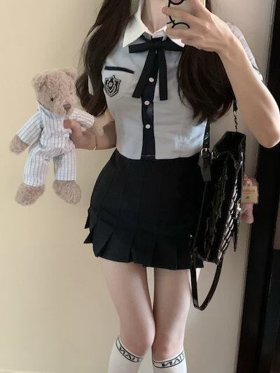 韓国 財閥お嬢さん 甘辛MIX セットアップ シャツ スカート ネクタイ レディース jk カジュアル アーガイル 韓国系セットアップ スカートスーツ 秋冬