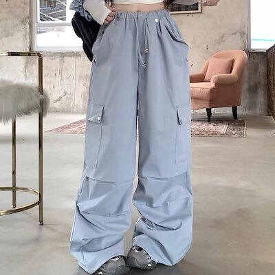 2024 夏パンツ ロング丈 ワイド ストレート サイドポケット ハイウエスト 美脚効果 脚長効果 細見え 夏 水色 白 おしゃれ かわいい 韓国ファッション レディース お出かけ