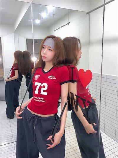 2024 春夏トップス 大人可愛い風半袖 Tシャツ 韓国 ラウンドネックロゴスリム かわいいへそ出しショート おしゃれスリーブカジュアルサイドコーデ丈 ファッション系レディースストリート T