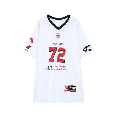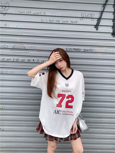 2024 夏 韓国可愛い風トップス Tシャツ ファッション系 半袖 スリムフィット サイド ペイントシルエットゆったり丈 休日レディースサイズ韓国Vネック おしゃれ カジュアル メンズライク T