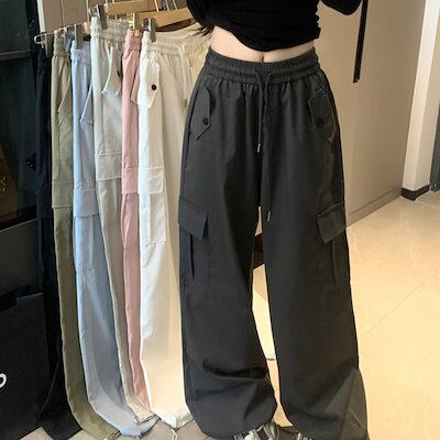 2024 夏パンツ ロング丈 ワイド ストレート ハイウエスト 美脚効果 脚長効果 細見え 夏 水色 黒 緑 おしゃれ かわいい 韓国ファッション レディース お出かけ