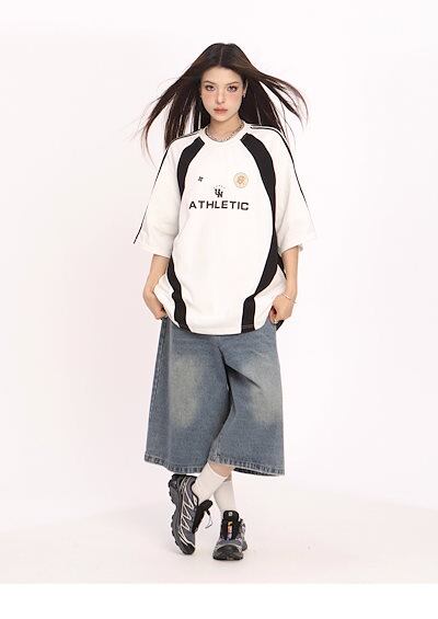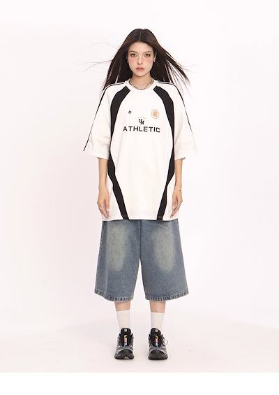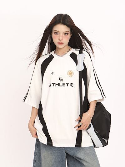 2024夏 韓国可愛い風トップス Tシャツ ファッション 半袖 スリムフィット サイド ペイントシルエット ゆったり丈 休日レディースサイズ韓国Vネック おしゃれ カジュアル メンズライク T1