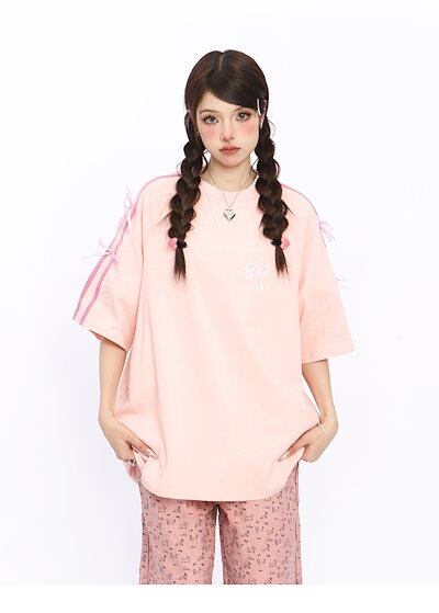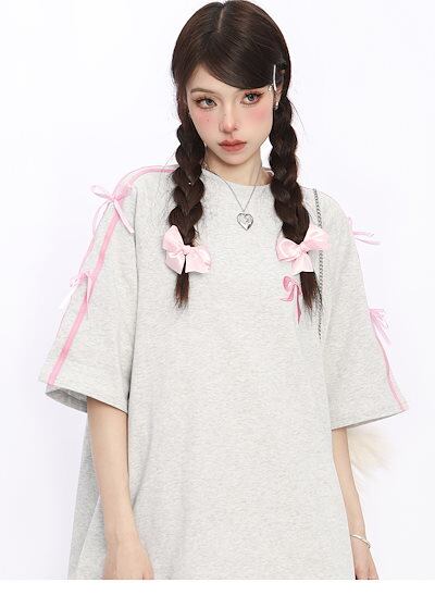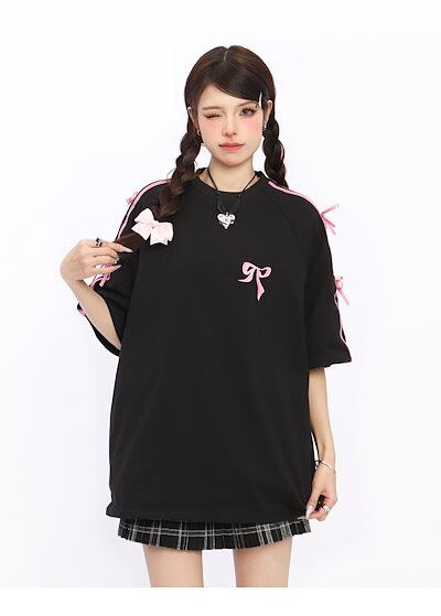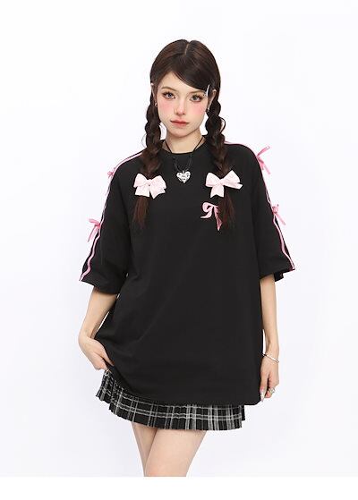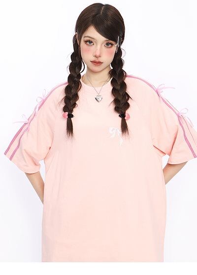 2024夏 韓国可愛い風トップス Tシャツ ファッション系 半袖 スリムフィット サイド ペイントシルエット ゆったり丈 ロングレディースサイズ韓国Vネックおしゃれカジュアルメンズライク T