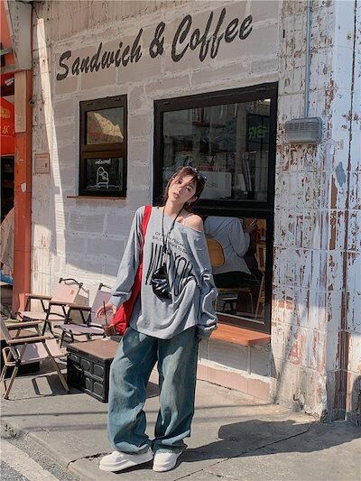 2024夏トップス Tシャツ 長袖 ワンショルダー 肩見せ 数字 74 ゆったり 細見え 夏 赤 おしゃれ かわいい 韓国ファッション レディース お出かけ