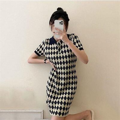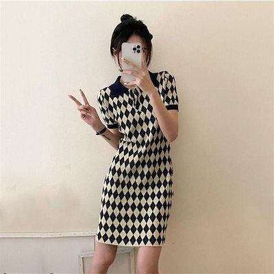 品質いいな新品 ニットワンピース タイトワンピース 半袖 きれいめ 大人 韓国風 レディース ニット ゴルフワンピース ポロワンピース スポーツウェア 20代30代 Aライン