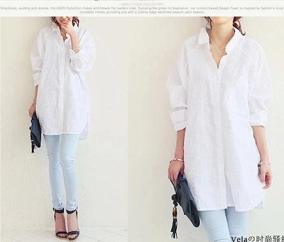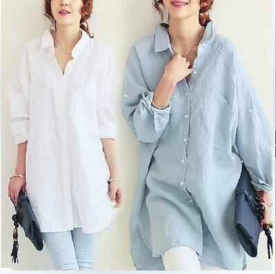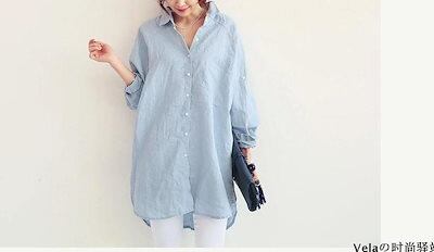 【急速出荷】シアーシャツ綿麻 トップス シャツ ゆったり ワンピーっす 韓国ファッション ロング丈ブラウス