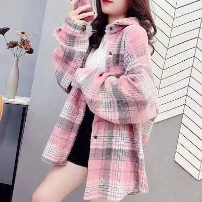 今っぽシアーシャツ 2024年春新作ゆったりフランネルチェック 長袖ブラウスカジュアル 韓国 ブラウス レディースファッション カーディガン オフィス シャツ