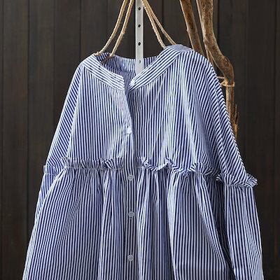 韓国ファッション ブルーストライプの純綿シャツ女性長袖春服新着痩せトップス 長袖 ブラウス レディース シャツ 今っぽシアーシャツ