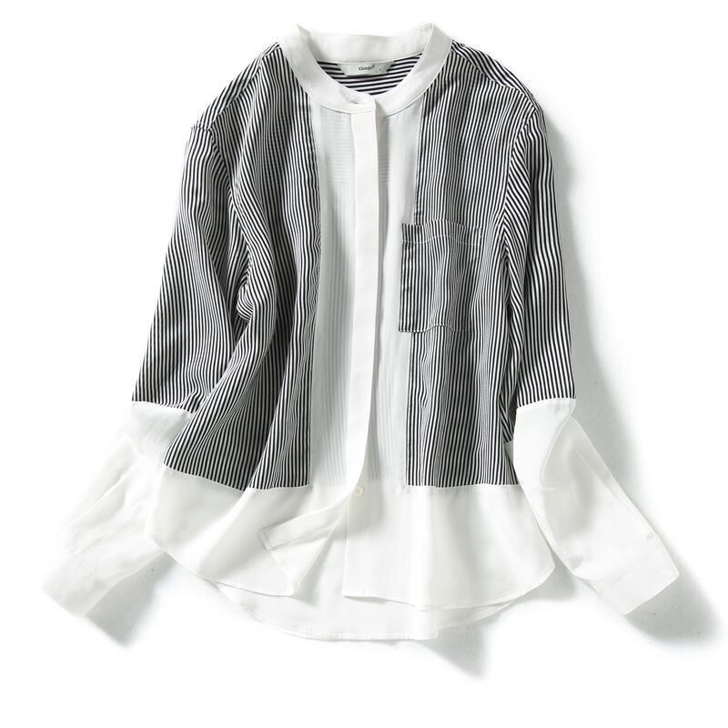 初回送料無料シャツシャツストライプトップスタンドカラーレディースファション服トップス人気商品