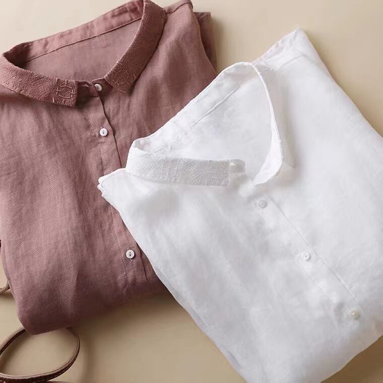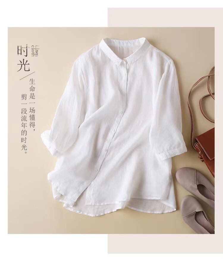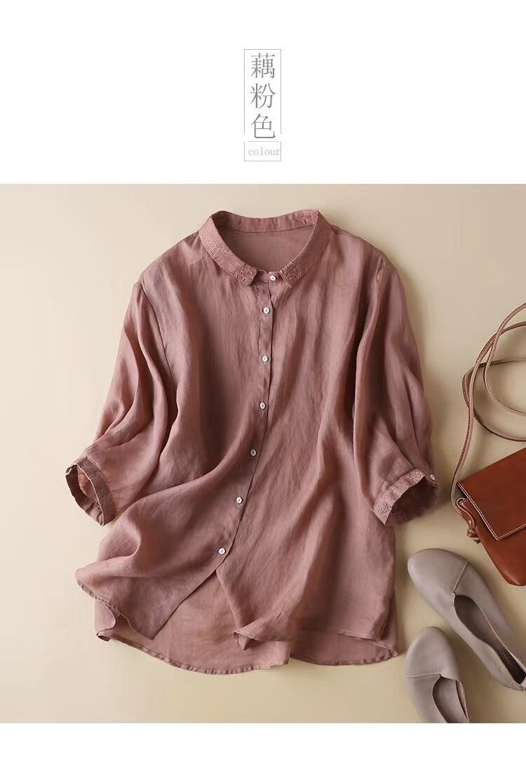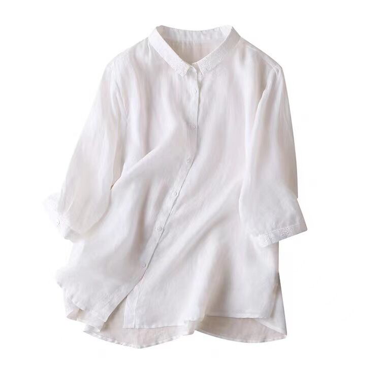 初回送料無料夏新作トップス ブラウス コットンとリネンの七分袖気質刺繍ブラウス