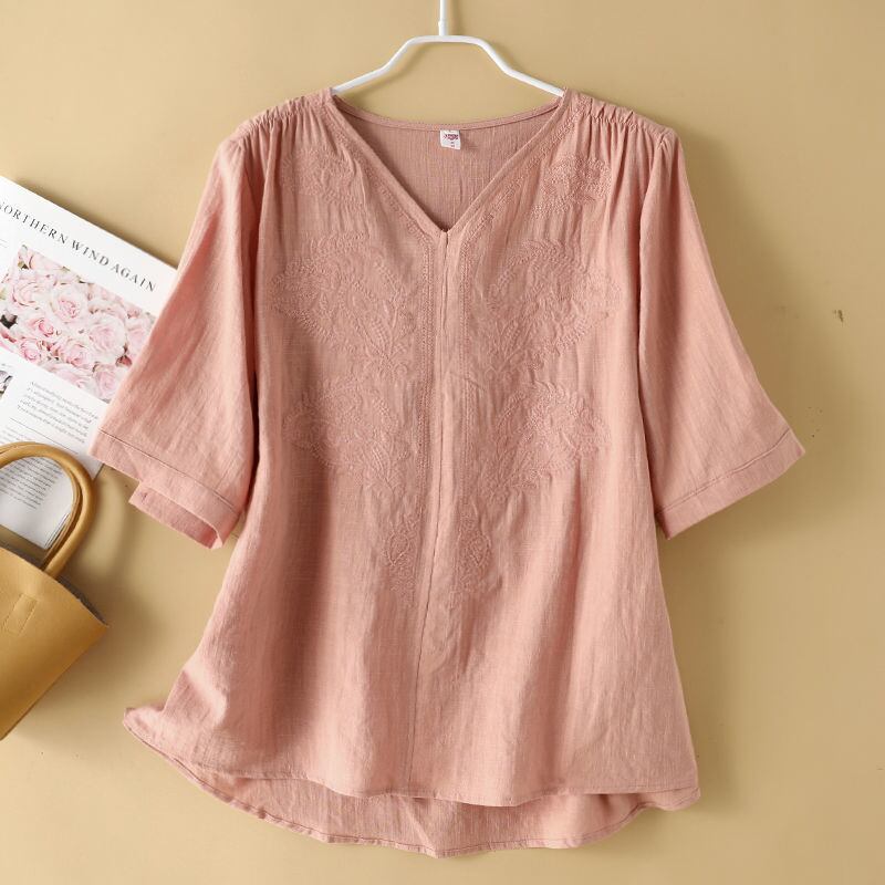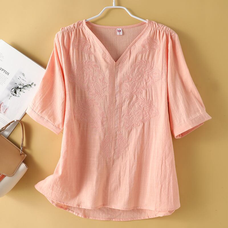 初回送料無料ゆったりとしたVネックトップTシャツスリミング刺?トップス