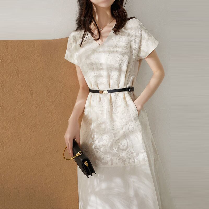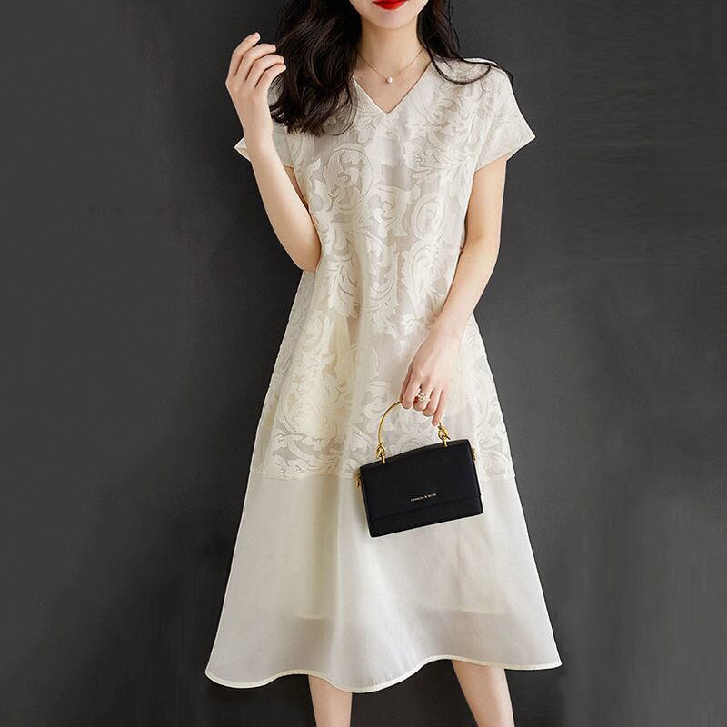 初回送料無料夏新作ドレスVネックワンピース トップス 高級感スカート