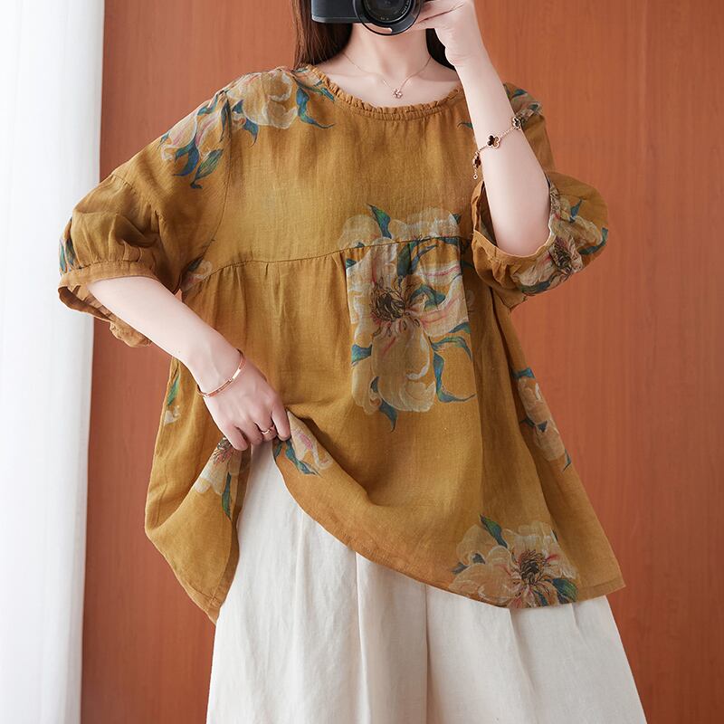 初回送料無料夏新作レディース人気トップス 綿とリネンゆったりサイズ シャツ ブラウス