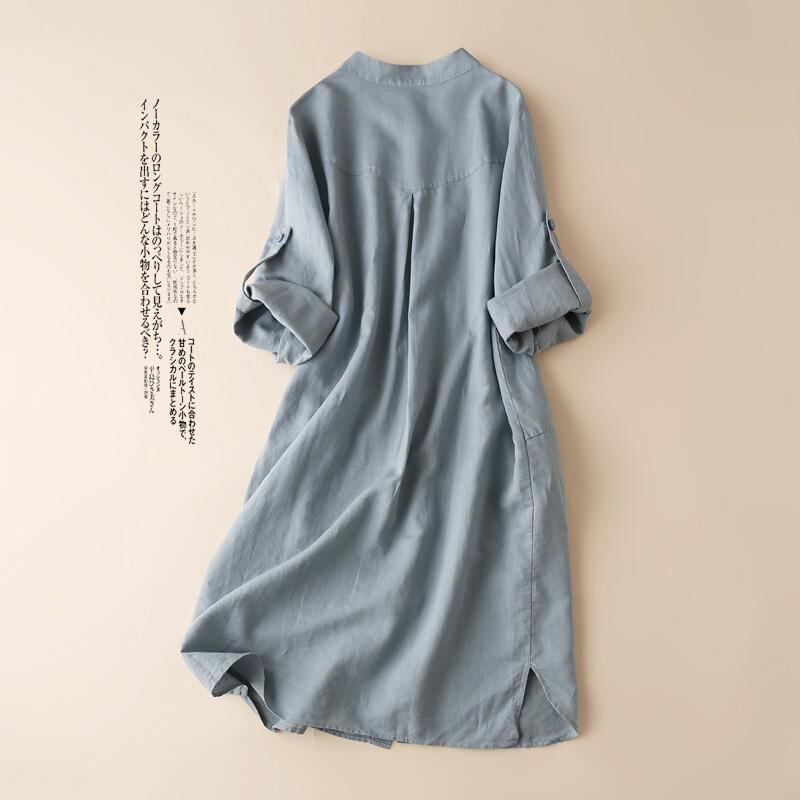 初回送料無料コットンリネンシャツコットンリネンミドル丈スタンドレディースファション人気商品トップス
