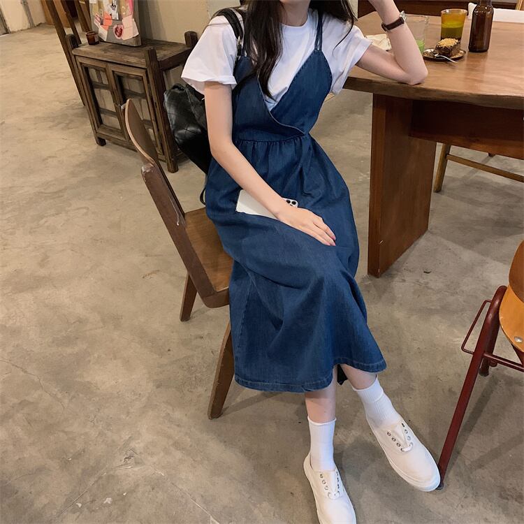 初回送料無料ラージサイズスリムロングサスペンダーワンピース トップス