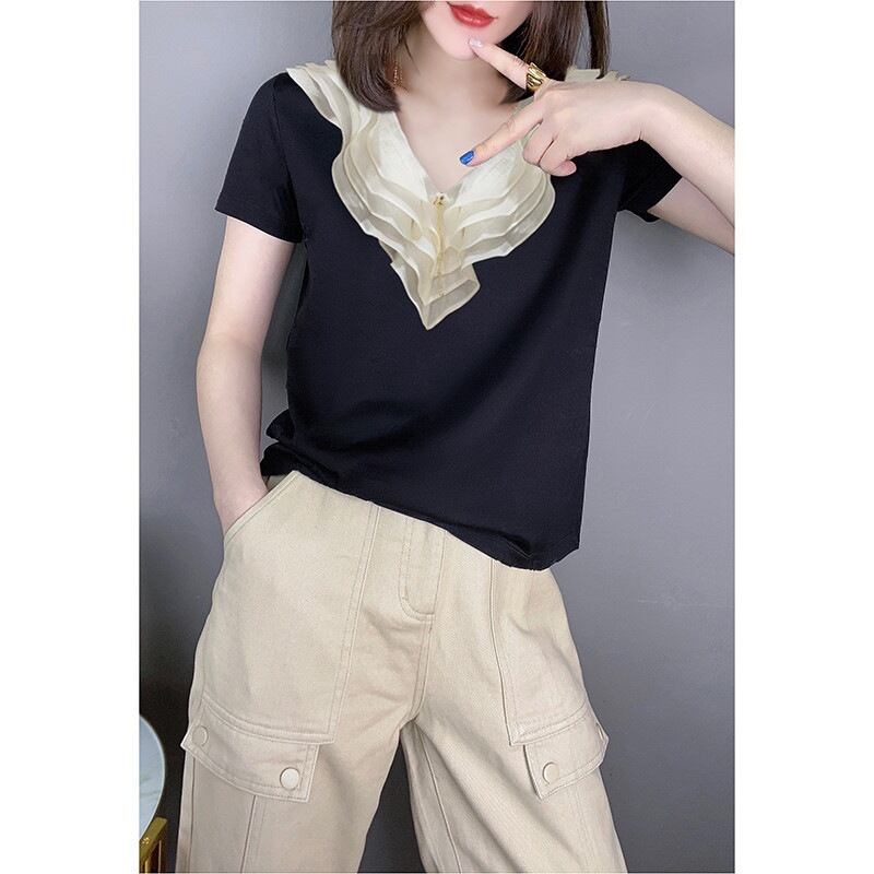 初回送料無料サマー半袖フリルネックTシャツVネックシャツトップスブラウス人気商品