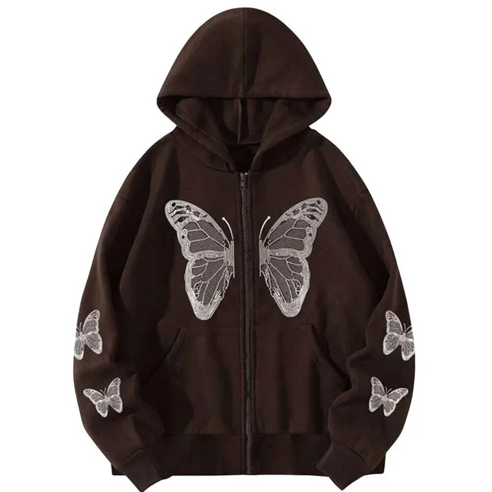 女性用長袖バタフライジッパークロージャー付きルーズジャケット、パーカー、スウェットシャツ、スウェットシャツ、y2k衣類、春、秋 パーカー ジャージ y2k T240908202216_02