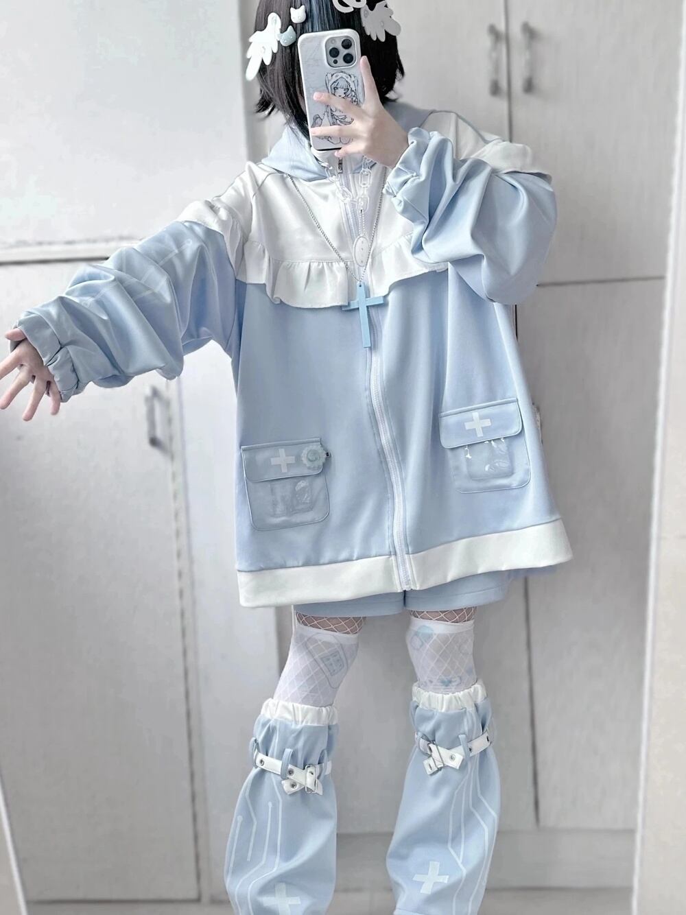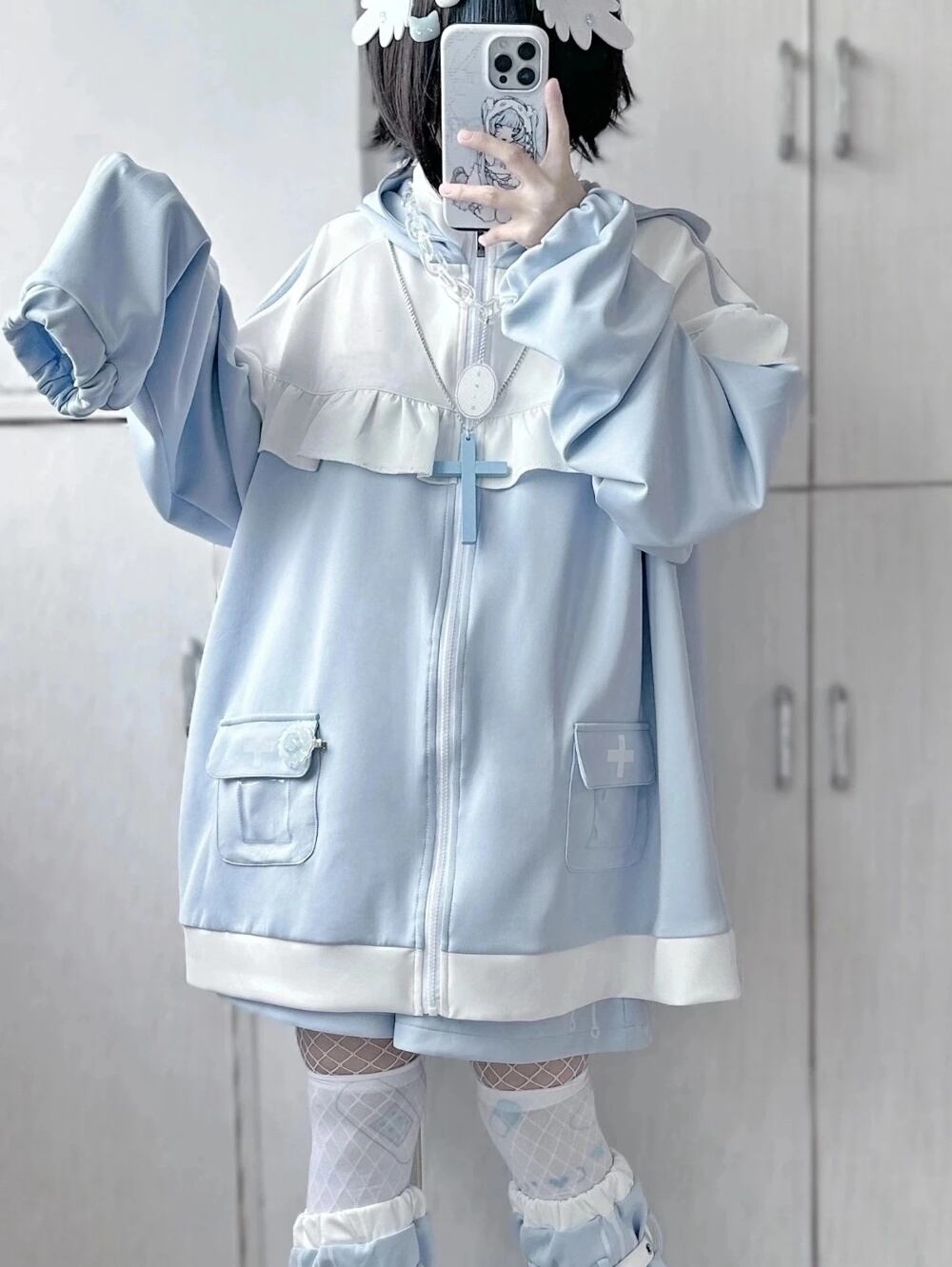 女性のルーズカジュアルキャットイヤーフード付きジッパーパーカー、かわいいスウェットシャツ、甘い女の子の服、日本の私のスタイル、サブカルチャー、秋、y2k パーカー ジャージ y2k T240908202245_01