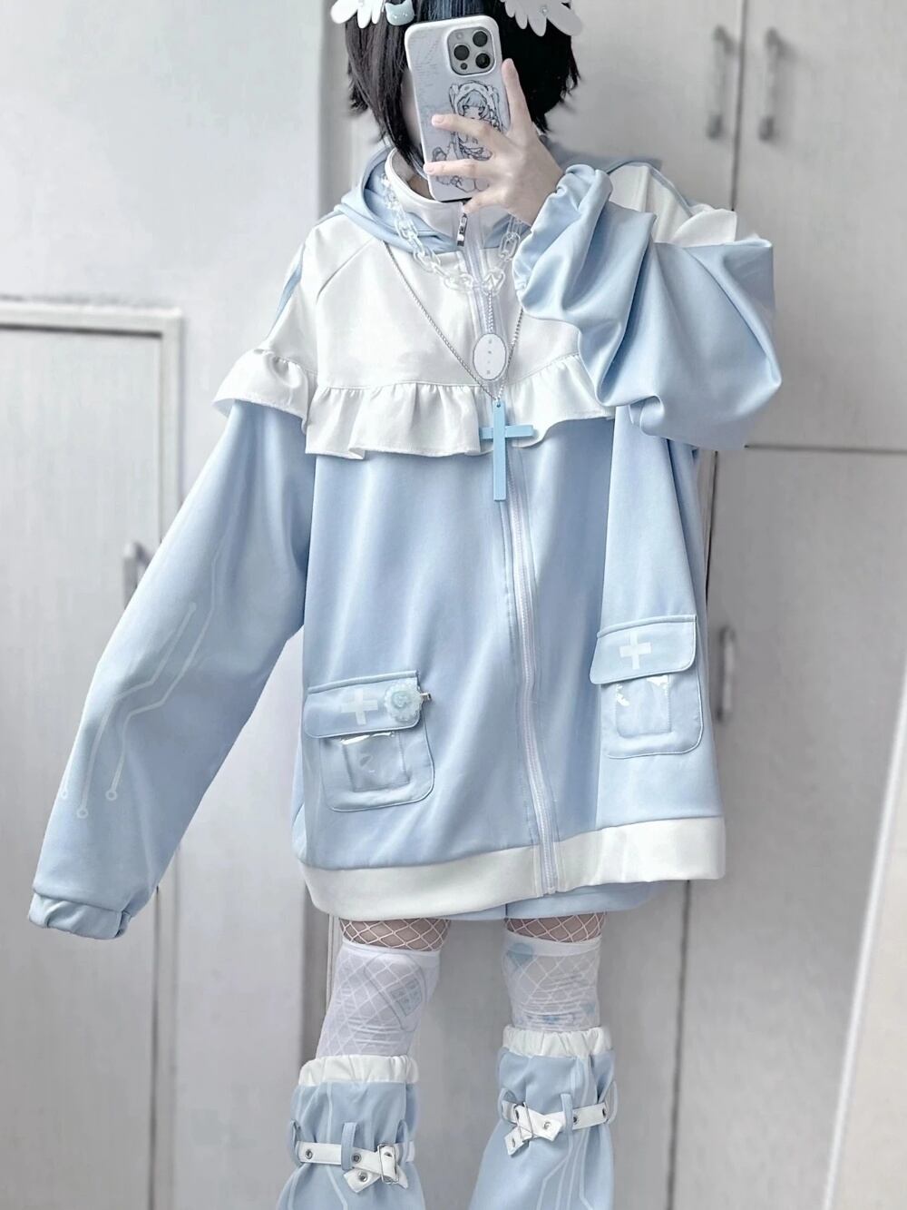 女性のルーズカジュアルキャットイヤーフード付きジッパーパーカー、かわいいスウェットシャツ、甘い女の子の服、日本の私のスタイル、サブカルチャー、秋、y2k パーカー ジャージ y2k T240908202245_10