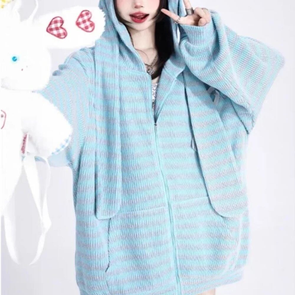 Deeptown-女性用ストライプパーカー,原宿y2kジップアップスウェットシャツ,和風ファッション,秋冬 パーカー ジャージ y2k T240908202304_01