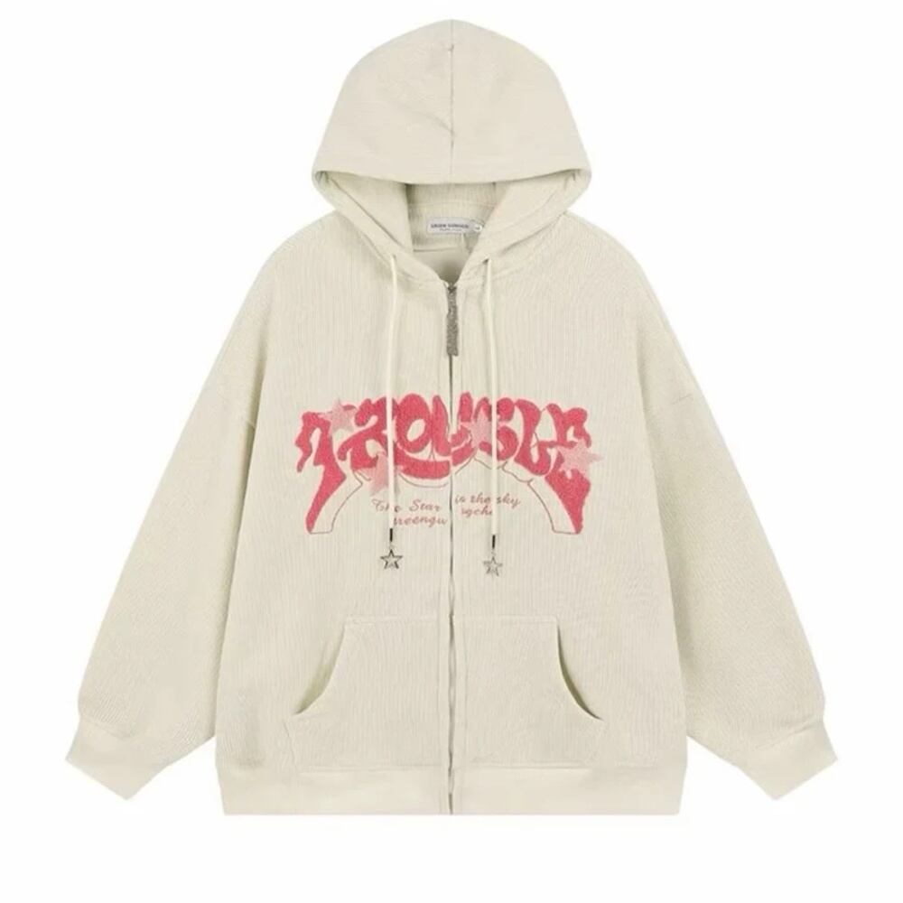 女性のコーデュロイジップアップパーカー、ヒップホップトレーナー、アメリカンヴィンテージゴス、フォームプリントジャケット、y2kストリートウェア、ファッション パーカー ジャージ y2k T240908202319_01