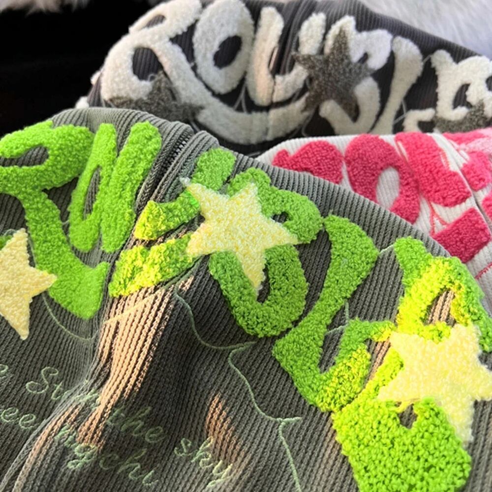 女性のコーデュロイジップアップパーカー、ヒップホップトレーナー、アメリカンヴィンテージゴス、フォームプリントジャケット、y2kストリートウェア、ファッション パーカー ジャージ y2k T240908202319_02
