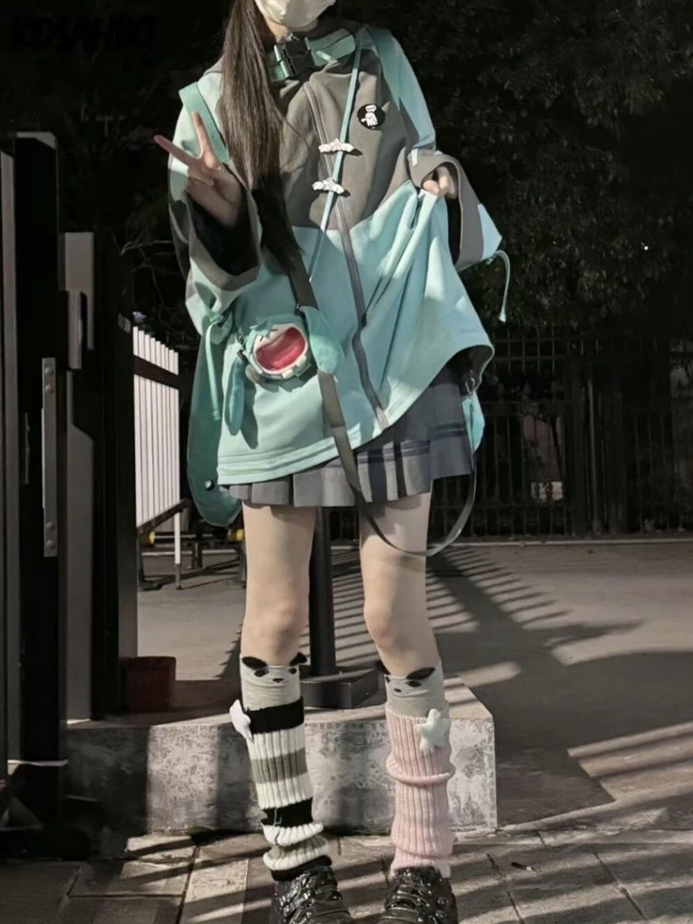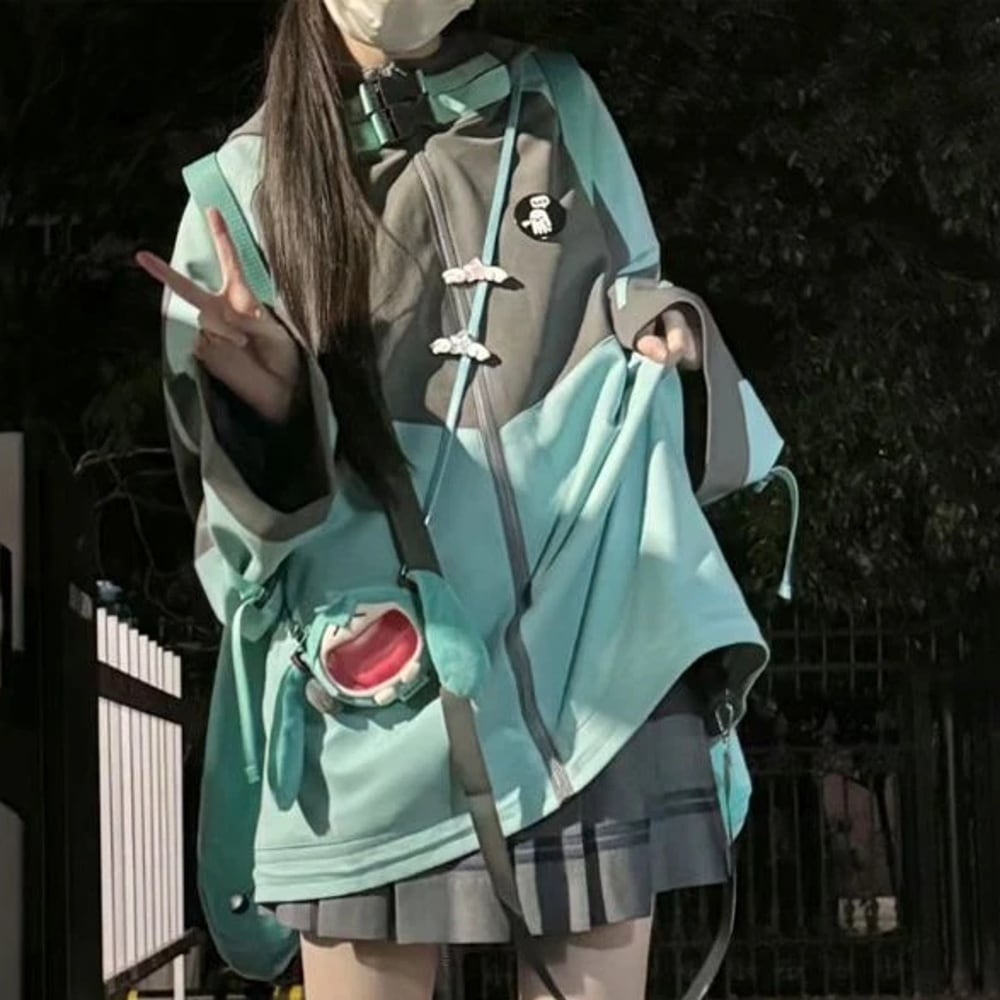 Y2k美的ヴィンテージポケットフード付きスウェットシャツ女性用、ジッパーパーカー、ルーズグランジ、パッチワーク、カジュアル、日本、原宿、春、2022 パーカー ジャージ y2k T240908202449_01