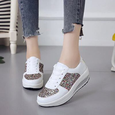 特にスパンコール超軽量スポーツシューズミラード大型ミラーロッキングシューズレディースシューズブラ